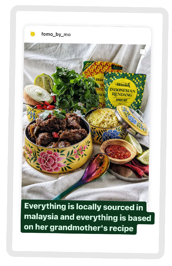 Experience authentic family recipes for Rendang, a full-bodied Indonesian dry curry packed with explosive depth and revered as a national comfort food.Our spice kits are essentially premium curry pastes or simmer sauces made from the freshest local spices. Just simmer and serve in minutes!